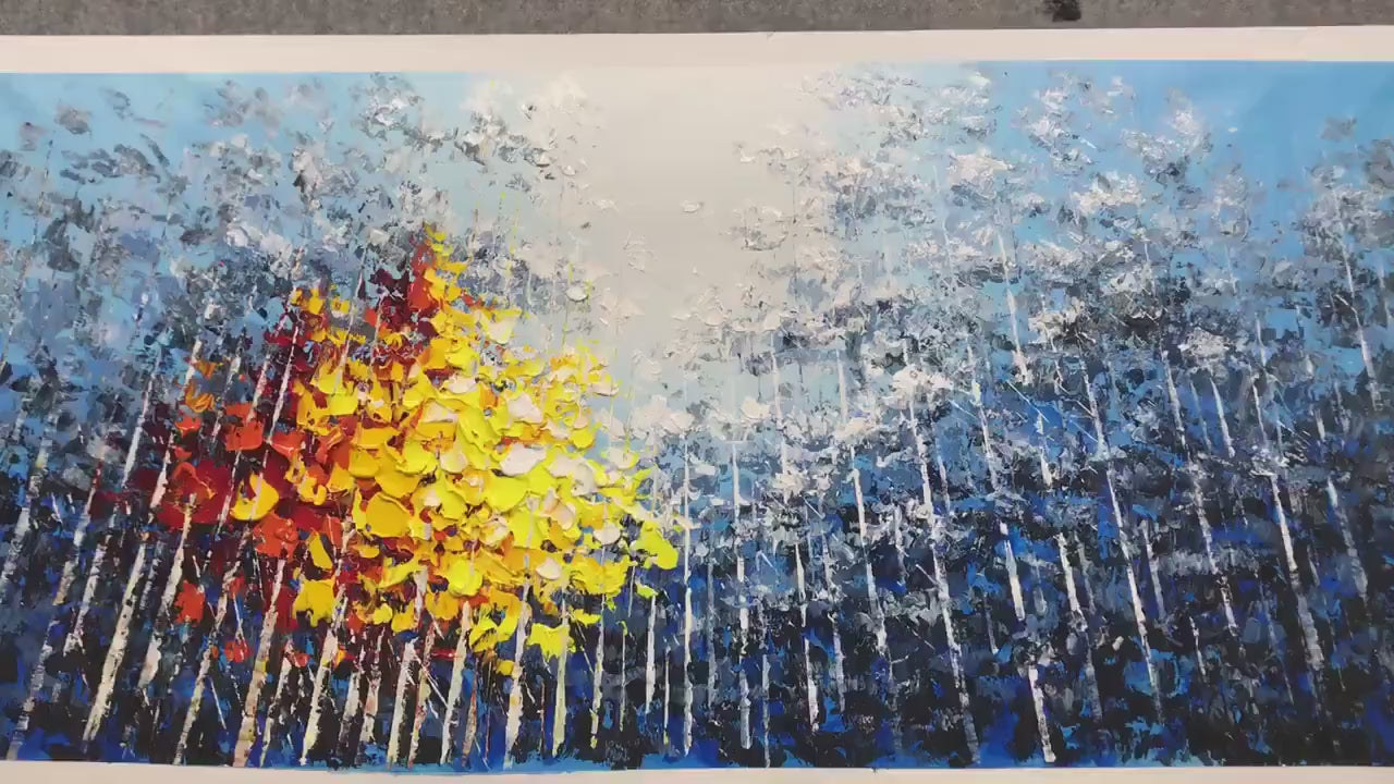 "Large Hand-Painted Oil Painting on Canvas – Blue Sky & Colorful Forest, Textured Impasto Wall Art"