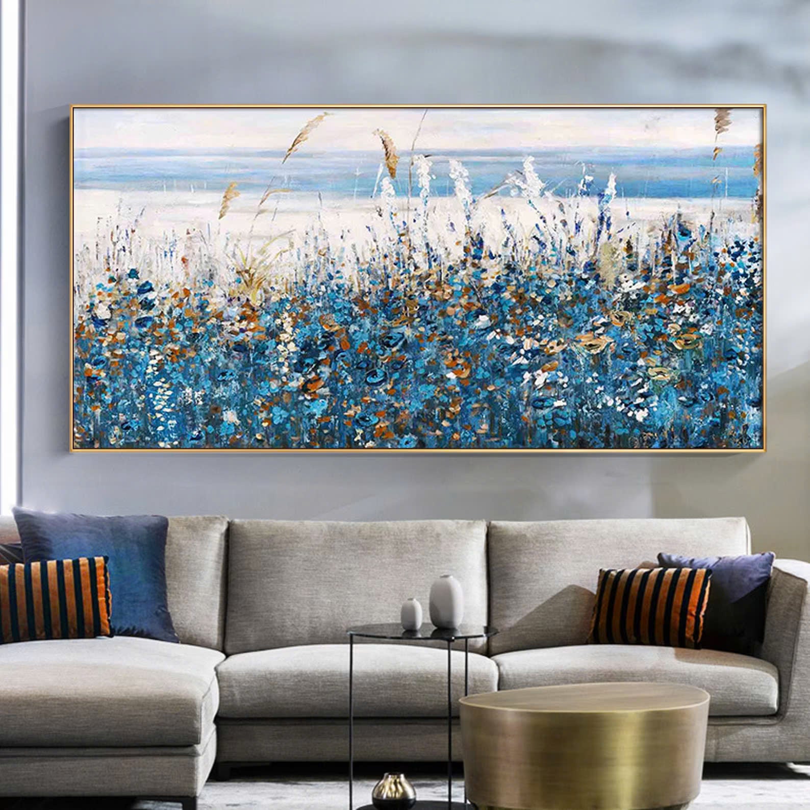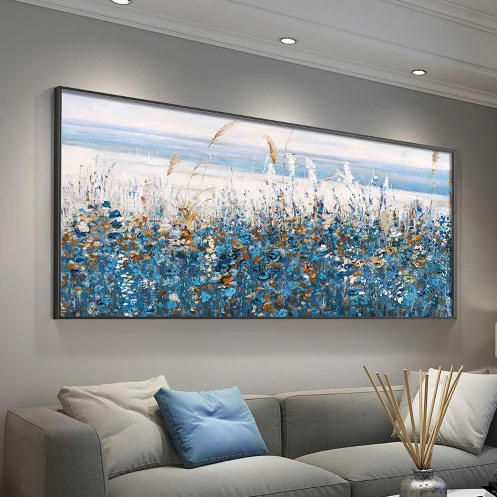 Original oil painting abstract art on canvas Nature home decor blue horsetail grass oil painting,wall art, handmade gift